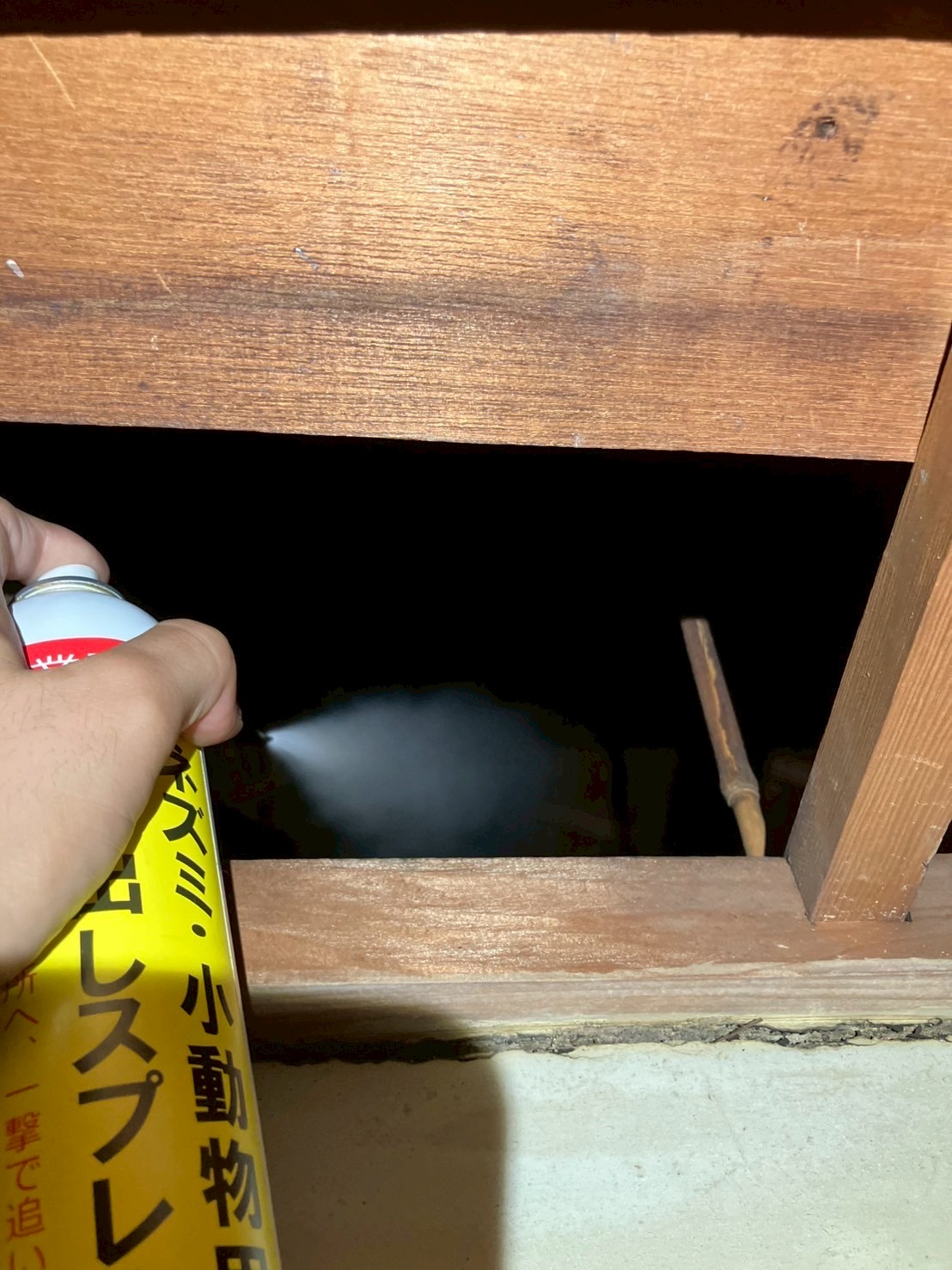 追い出し剤を床下や各天井裏へ散布し追出しを行います。